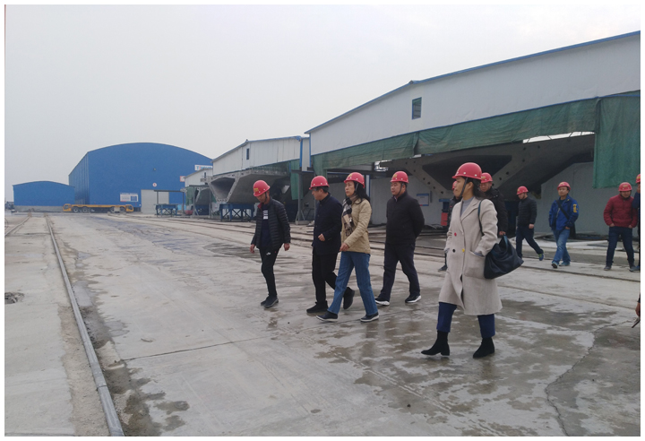 李会长一行首先来到河南泰宏装配构件有限公司,该厂占地300亩,内设短线匹配法预制区、节段梁修整区、混凝土搅拌站、大型标准化全自动钢筋加工车间等,场内布置3条生产线、4台100吨龙门吊机、箱梁预制液压模板和蒸汽养生设备各48套,目前月生产能力已达400片,预计2019年4月底前完成8000片预制箱梁的生产任务,该装配构件厂为公司西四环项目建设节段梁供给奠定了重要的基础保障。李会长就装配式构件厂区建设、节段梁制作加工、成品质量、成品养护给予了充分的肯定,同时,为公司进一步发展壮大、做优做精预制构件成品化部件提出了宝贵的意见和建议。