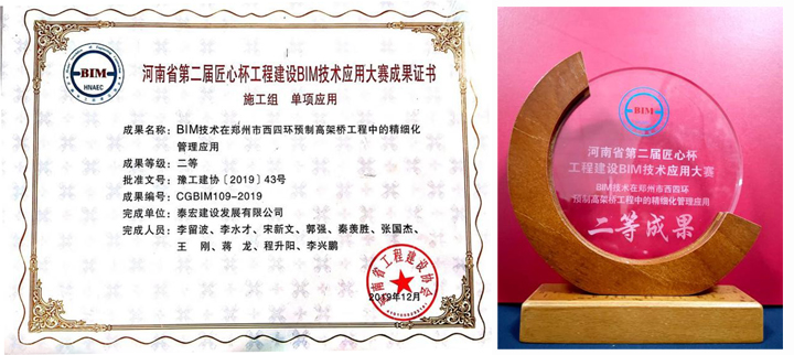 本次大赛共分为设计、施工、院校四个组别,共有227家参赛建筑企业及高校团队参加,包含了建筑工程、公路工程、铁路工程、市政工程、城市桥梁等专业218项作品。涵盖项目BIM技术应用的各个阶段,评选出综合一等奖10项,二等奖19项,三等奖30项、优秀奖32项;单项BIM应用一等奖12项、二等奖13项、三等奖22项、优秀奖50项;高校组BIM应用一等奖4项、二等奖5项、三等奖6项。公司申报的“BIM技术在郑州市西四环预制高架桥工程中的精细化管理应用”BIM成果,经评审组专家初评、现场答辩评审,荣获“匠心杯”工程建设BIM技术应用大赛施工组单项二等成果奖。