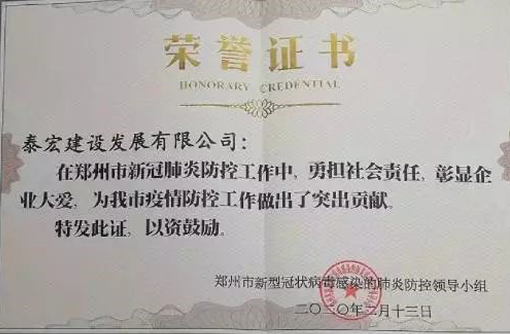 2020年伊始,湖北武汉新冠肺炎爆发,疫情牵动着全国人民的心。党中央、国务院高度重视,习近平总书记多次作出重要指示,对疫情防控工作进行安排部署。公司积极响应党中央、国务院及各级党委政府关于新冠肺炎疫情防控工作的指示精神,勇担社会责任,为助力打赢新冠疫情防控阻击战,公司分别向郑州市捐款1000000元,向林州市捐款100000元,共计捐款1100000元,用于抗击新冠肺炎疫情,用实际行动践行 “责任、和谐、共赢”的企业核心价值观,助力此次疫情防控阻击战,用无私奉献弘扬企业正能量。