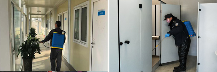 落实隔离区管理制度。成立隔离区防控小组,负责入住手续办理、人员测温、后勤服务与人员出入管理工作,保障隔离工作有效落实。同时,建立疫情应急处置机制,现场一旦发现员工有发热、咳嗽等症状时,严格按照 “五步工作法”,第一时间启动应急处置流程,及时妥善处理。“五步工作法”即:第一步,及时发现、送医就诊,第二步,采取临时措施、等候就诊结果,第三步,精准排查、及时上报,第四步,停工管控、现场消杀,第五步,隐患消除、合格复工。