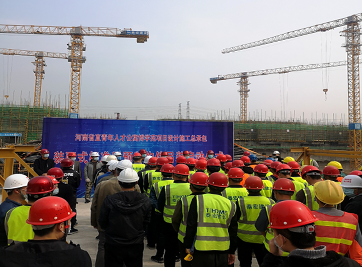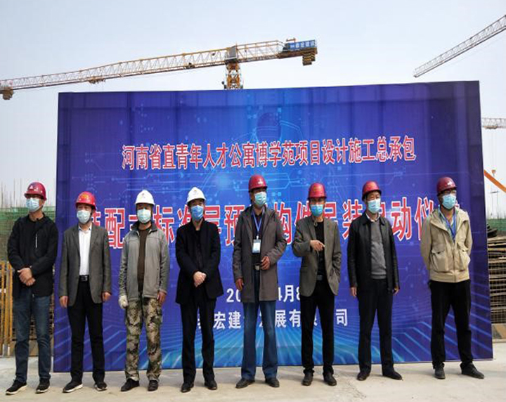 48日、49日,在各参建单位的见证下,河南省重点工程--省直青年人才公寓博学苑、慧城苑项目分别举行了装配式标准层构件吊装启动仪式。