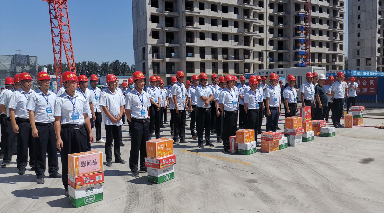 最后,公司领导为施工人员代表颁发慰问品,主持人宣布封顶仪式圆满结束。