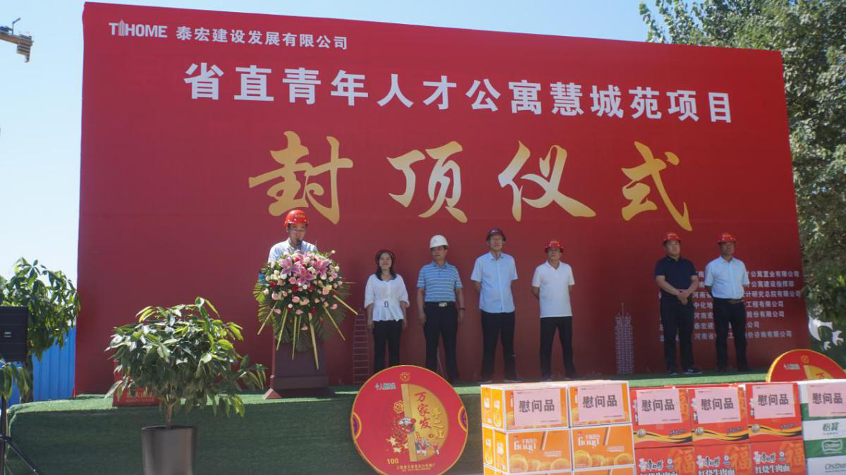 首先,人才公寓建设指挥部董晓晶主任上台致辞,董主任讲到,自项目开工以来,在泰宏建设公司领导的高度重视和大力协调下,在监理单位、设计单位及相关单位的共同配合下,项目部全体员工全力以赴,克服各种困难,高标准,高质量地完成了慧城苑项目主体结构施工任务,在此我代表建设单位向大家表示衷心感谢。