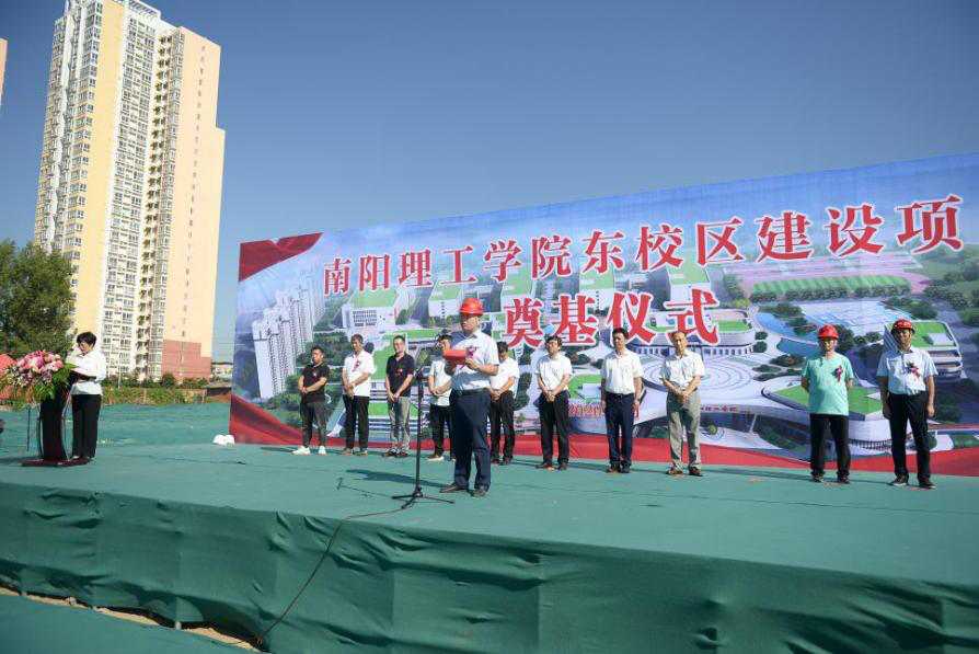 仪式上,南阳理工学院安士伟校长致辞,安校长表示:建设南阳理工学院东校区,是市委、市政府顺应群众期昐、解决民生问题的重大决策。希望施工单位精心组织,科学施工,积极进取,以开工奠基为契机,紧盯建设进度,千方百计赶时间、抢进度,确保项目早建成、早投入、早见效。向市委、市政府和人民群众交上一份满意答卷。