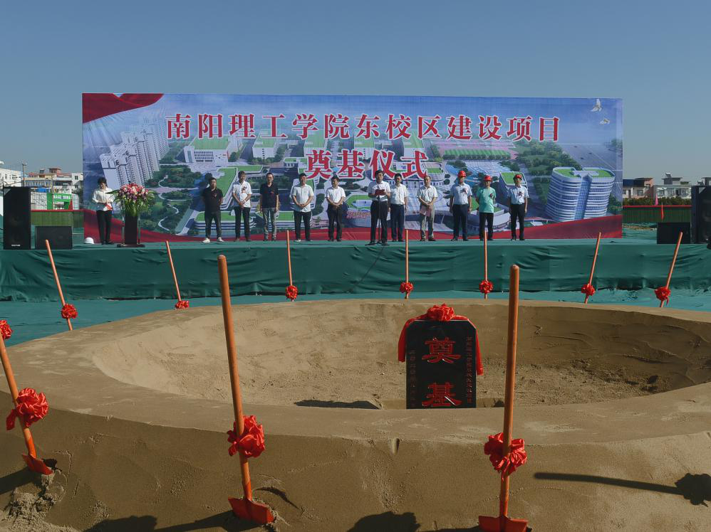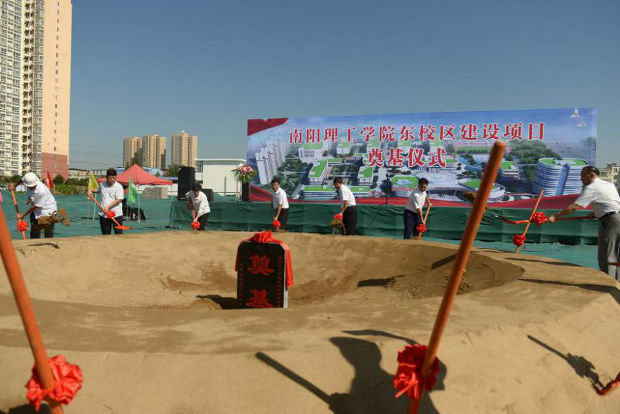 9月3日上午,南阳理工学院东校区建设项目隆重举行开工奠基仪式,南阳市宛城区区长樊牛,宛城区五里堡办事处书记崔振世,吕庄社区书记朱小豹,南阳理工学院校长安士伟,泰宏建设工程部经理张东,以及项目的勘察、设计、施工、监理方代表参加奠基仪式。仪式由南阳理工学院副校长王玉磊主持。