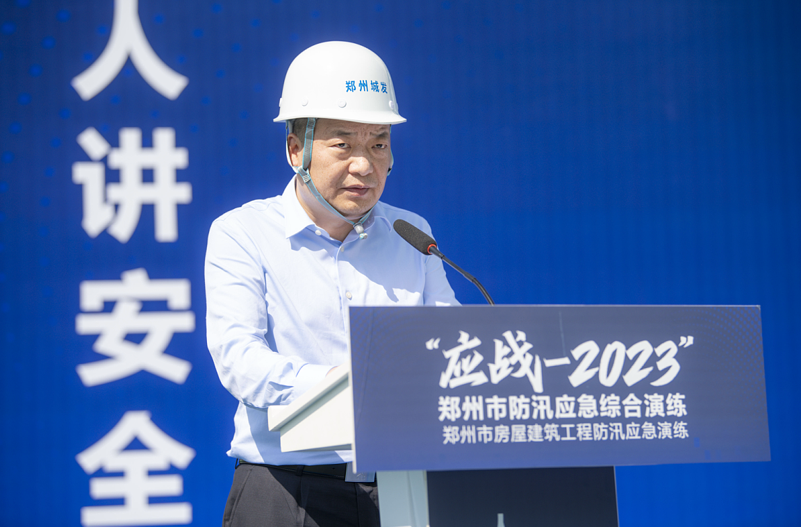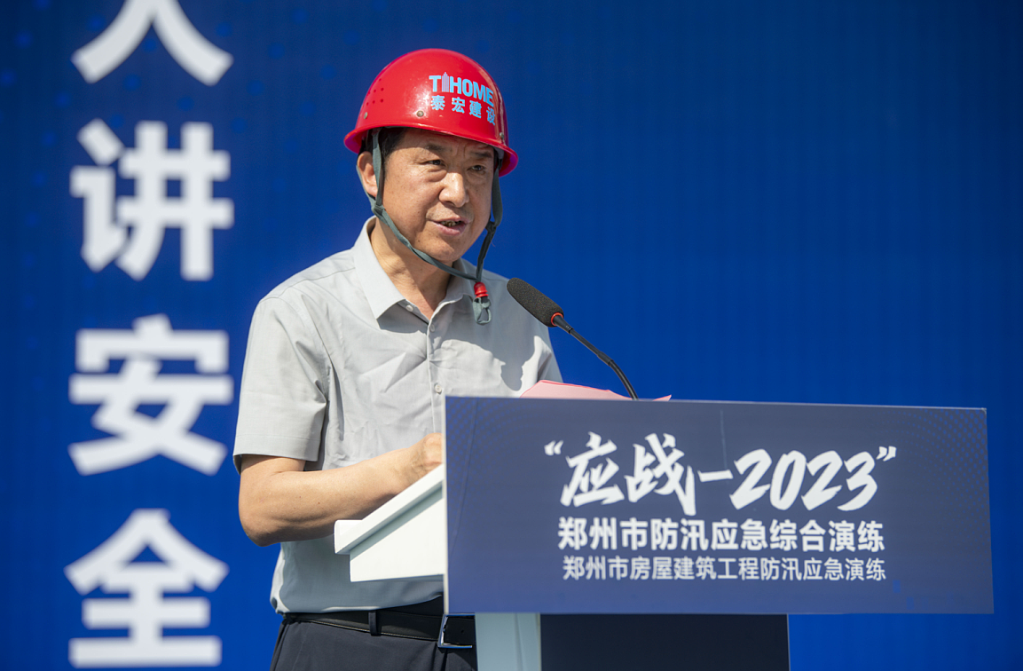 郑州市城乡建设局党组书记、局长苏建设对本次房屋建筑工程防汛应急演练做总结点评。苏局长对本次防汛演练表示肯定,并对2023年郑州市城建系统防汛工作提出了具体要求:一是站位要高。一切工作都要做到未雨绸缪、有备无患,坚决克服麻痹思想、侥幸心理、懈怠情绪,全力备汛备战,确保万全准备、万无一失。二是预案要实。要结合实际,按照“一区一案、一企一案、一项目一案”的原则,进一步明确防汛要点、重点部位、关键环节、职责分工和处置流程,切实增强应急预案的针对性和实战性,确保有效应对各类突发状况。三是队伍要强。各级各部门都要健全指挥机构、完善工作机制,做到组织领导有力、应急响应及时、调度指挥有序、临场处置果断。四是物资要足。要按照宁可“备而无用”、不可“用而无备”的原则,结合各类工程建设实际,做到提前谋划、提前核算、提前筹备,确保工程机械、抽排设备、发电设备、救援设备、封堵物资、防护物资、医药物资等各类防汛物资备得齐、备得足、调得出、用得上。五是演练要真。要增强演练的实战性,做到全流程推演、全要素配置、全链条实操,坚决防止把演练当“演戏”,做到练为战、不能练为看,真正把今天参加演练的“演员”锻炼成明天防汛战场的“战斗员”。六是备战要紧。要加强战备值班,严格落实24小时值班值守制度,随时保持临战状态;要时刻关注天气形势,做到闻讯而动,听令而行。