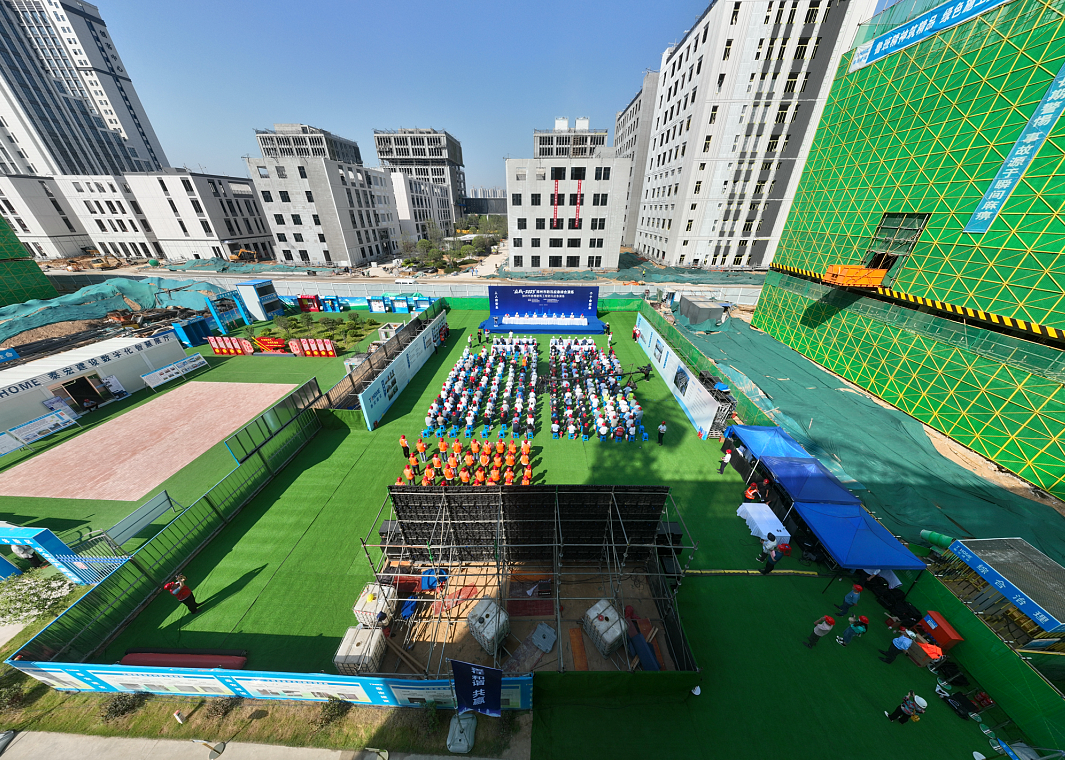 金岱智慧产业园二期项目作为“应战-2023”郑州市防汛应急综合演练—郑州市房屋建筑工程防汛应急演练主战场,将以此次演练为契机,紧紧围绕公司提出的“安全化、文明化、绿色化、工具化、智慧化”的五化标准,继续提升现场安全文明标准化水平,为郑州市安全文明标准化工作推进贡献一份力量。