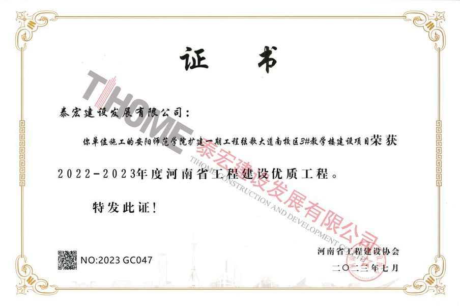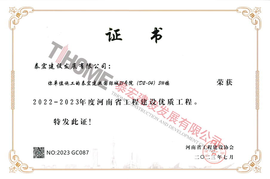 泰宏建设获三项河南省工程建设优质工程奖