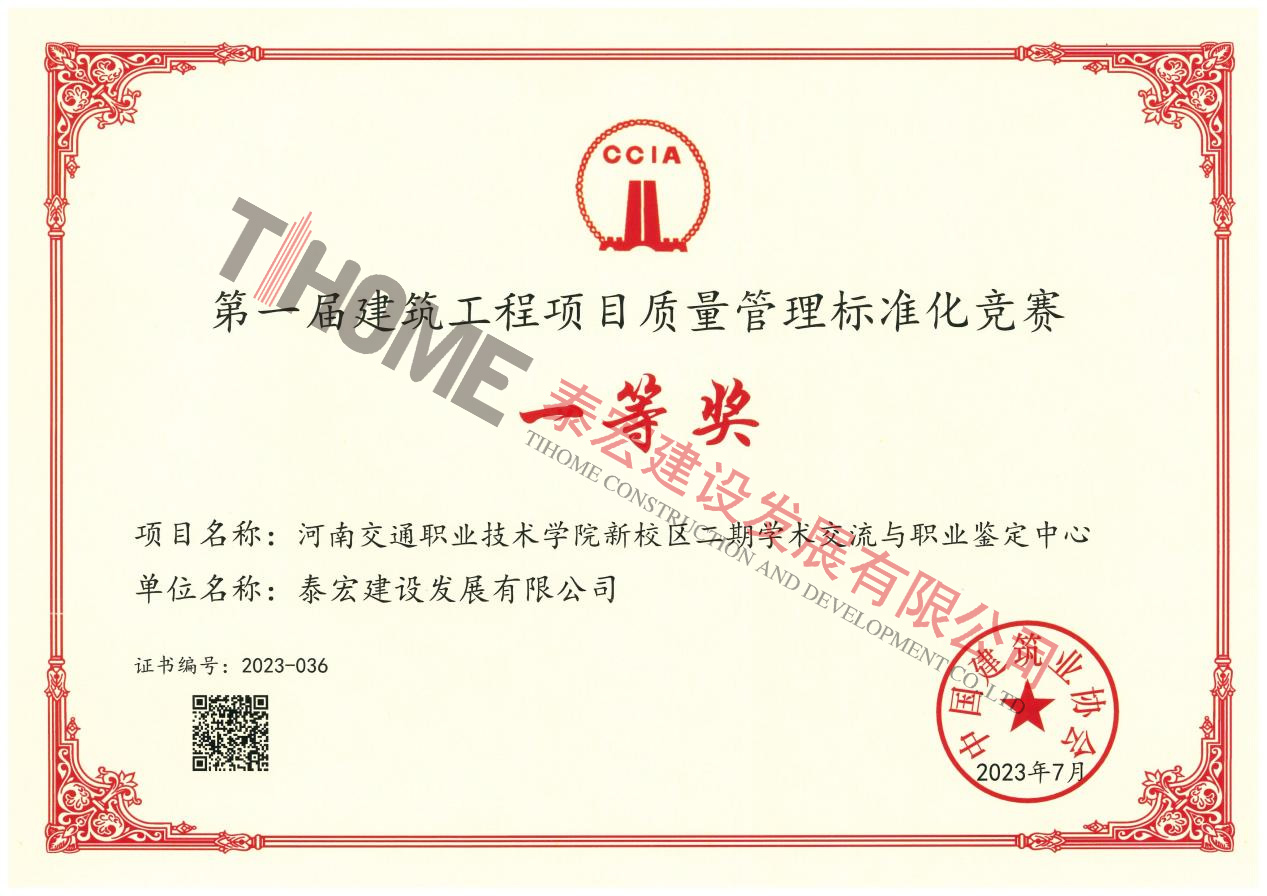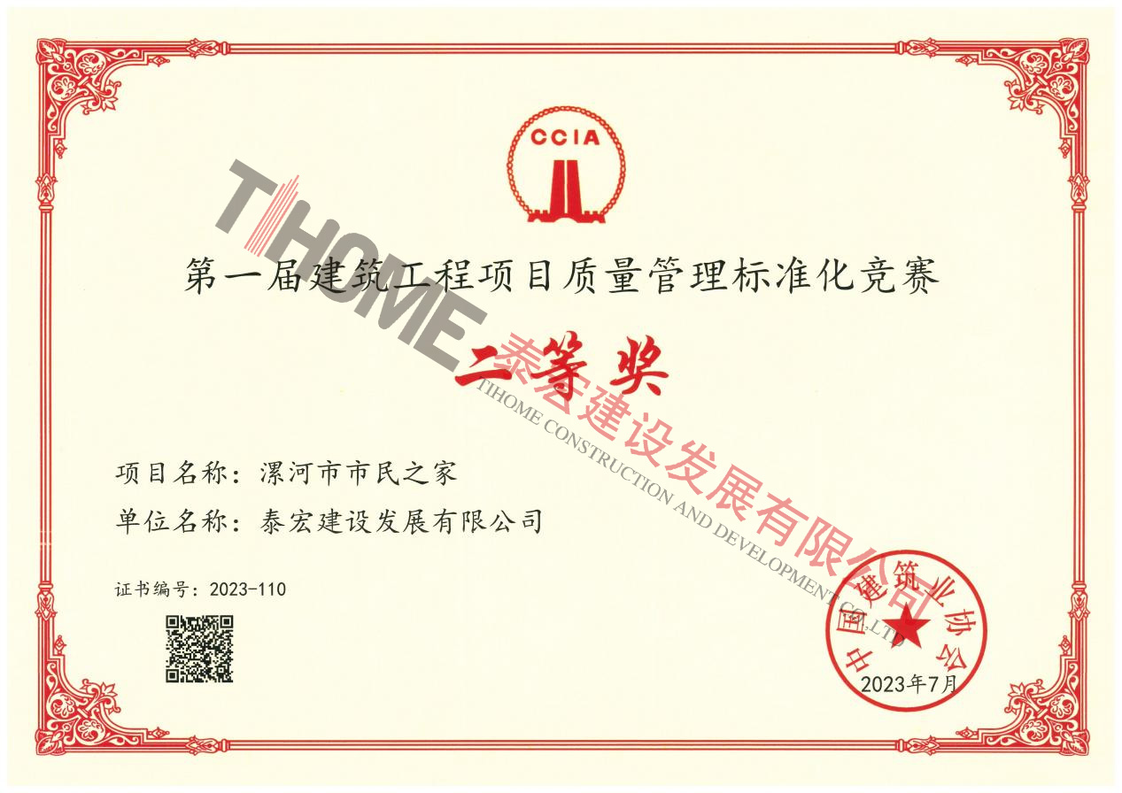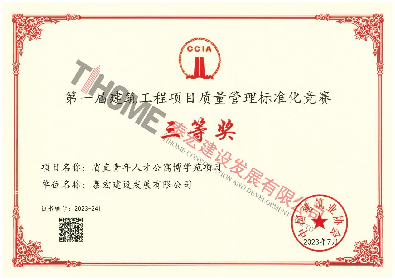 泰宏建设荣获第一届建筑工程项目质量管理标准化竞赛一等成果