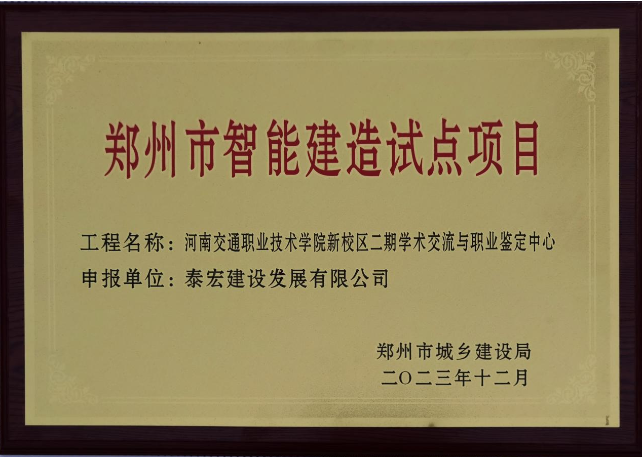 郑州市智能建造试点企业和试点项目评价是郑州市城乡建设局深入贯彻落实住房和城乡建设部《关于公布智能建造试点城市的通知》(建市函〔2022〕82号)、《郑州市智能建造试点城市实施方案》等有关要求,推动郑州市智能建造试点城市建设,培育一批具有发展潜力的智能建造骨干企业,以点带面发挥引领作用,推动智能建造产业集群发展的重要举措。此次,泰宏建设智能建造试点企业和两个智能建造试点项目的立项,是对公司智能建造工作的认可和鼓励,也是公司进一步推进智能建造工作的动力。