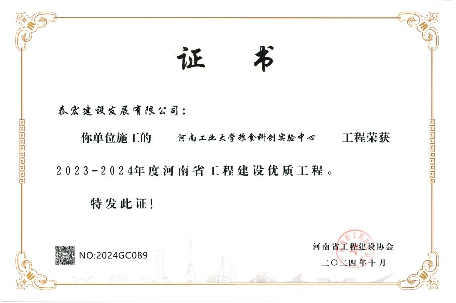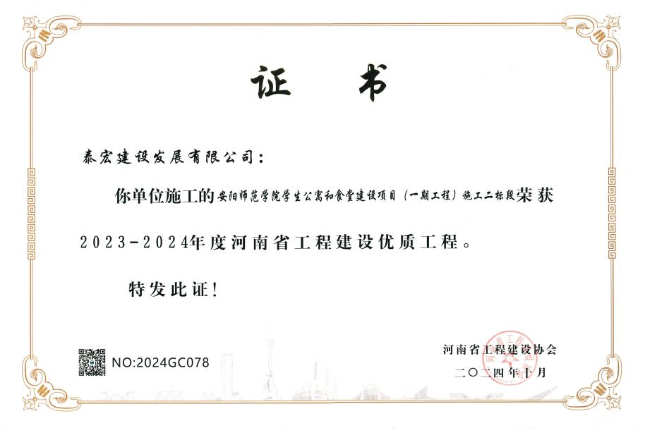 泰宏建设三项工程荣获河南省工程建设优质工程奖