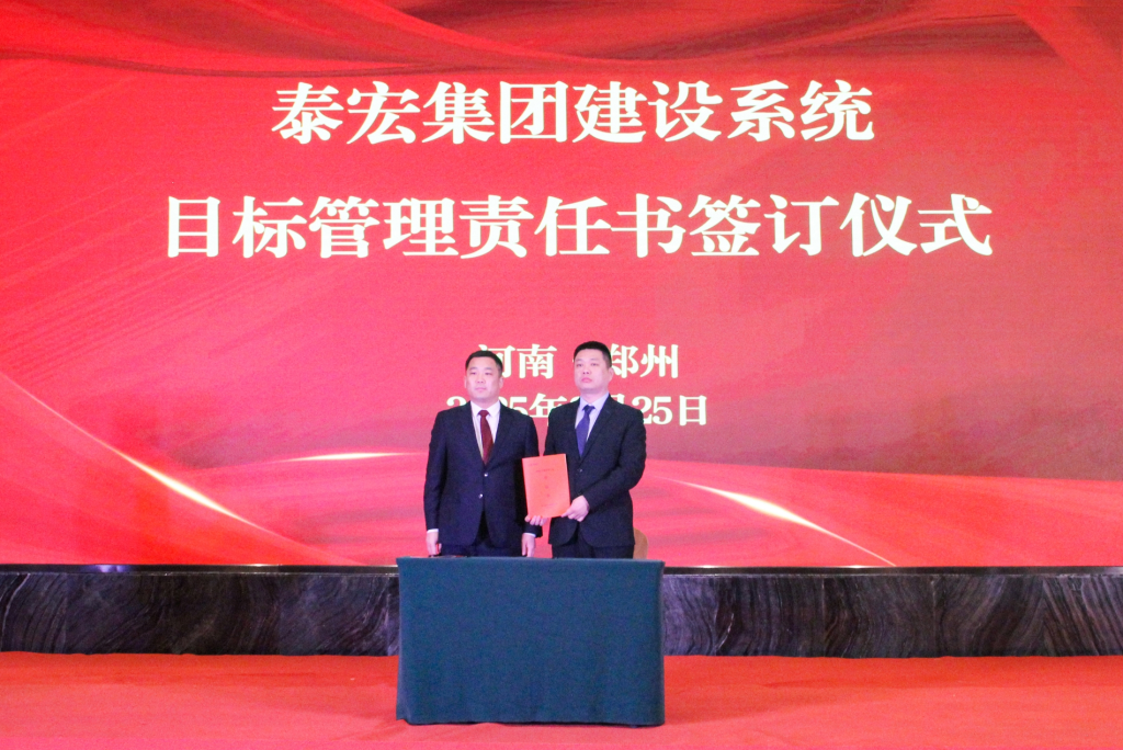 会上由泰宏集团常务副总经理张林州宣读泰宏集团建设系统各公司任命文件,由江南网投总工程师李守坤宣读泰宏集团建设系统先进集体、创鲁班奖先进项目部、优秀项目部及先进个人表彰文件,并进行了表彰;会议还举行了2025年目标责任书签订仪式,进一步明确目标任务,提升管理效力。